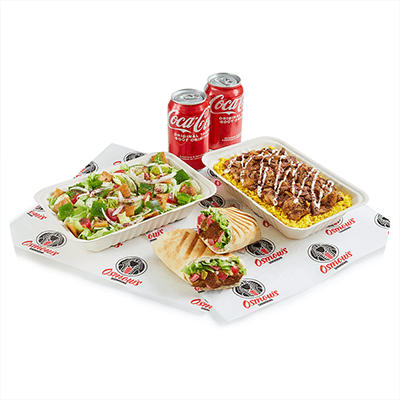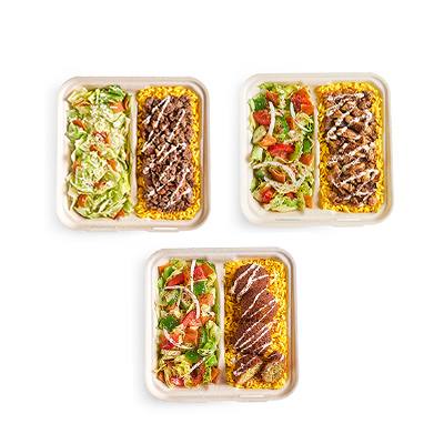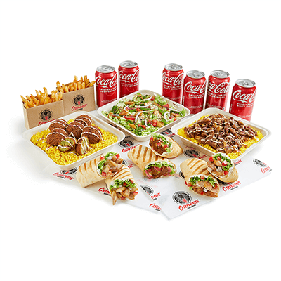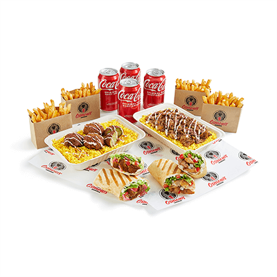 1 regular tray of Chicken Shawarma or 50 pcs of Falafel.